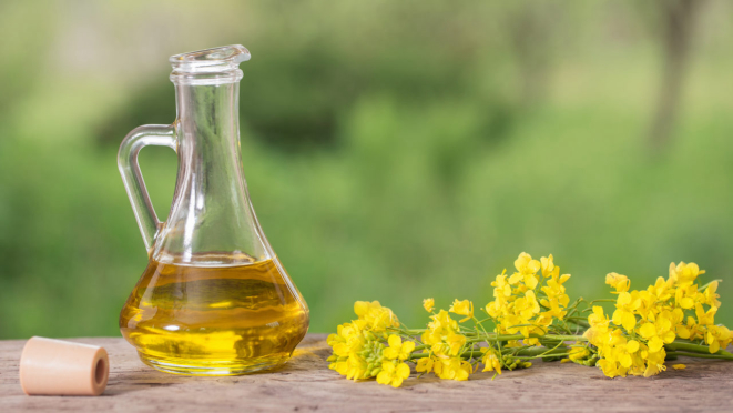 O óleo de canola é derivado da colza, uma planta com flores, e contém uma boa quantidade de gorduras monoinsaturadas e uma quantidade razoável de gorduras poli-insaturadas. De todos os óleos vegetais, o óleo de canola tende a ter a menor quantidade de gorduras saturadas. Tem um ponto de fumaça alto, o que significa que pode ser útil para cozinhar em fogo alto. Pode ser usado para refogar, fritar e assar.
