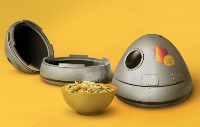Uma forma nada convencional de preparar macarrão instantâneo está sendo testada para comemorar os 50 anos do Miojo no Brasil, completos em 2015. A Nissin-Ajinomoto, em parceria com o chef francês Emmanuel Bassoleil (do restaurante Skye do Hotel Unique, em São Paulo) e a Interorbital, fabricante norte-americana de foguetes, satélites e naves espaciais, está desenvolvendo receitas e métodos para lançar no espaço uma cápsula para cozinhar a massa.