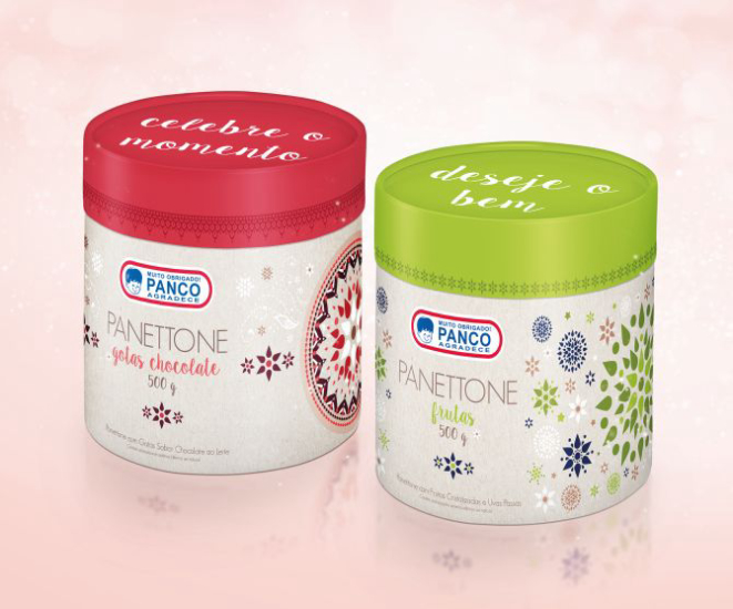 A Panco inova na embalagem dos panetones sabores Gotas de Chocolate e Frutas Cristalizadas e Uva Passa. A embalagem premium, no formato de um estojo circular, é ao mesmo tempo decorativa e ideal para quem quer presentear. São cinco sabores: Frutas Cristalizadas e Uvas Passas, Gotas de Chocolate, Recheado de Brigadeiro, Doce de Leite, Chocolate Meio Amargo. O preço sugerido fica entre R$ 14 e R$ 18. O produto é vendido em supermercados.