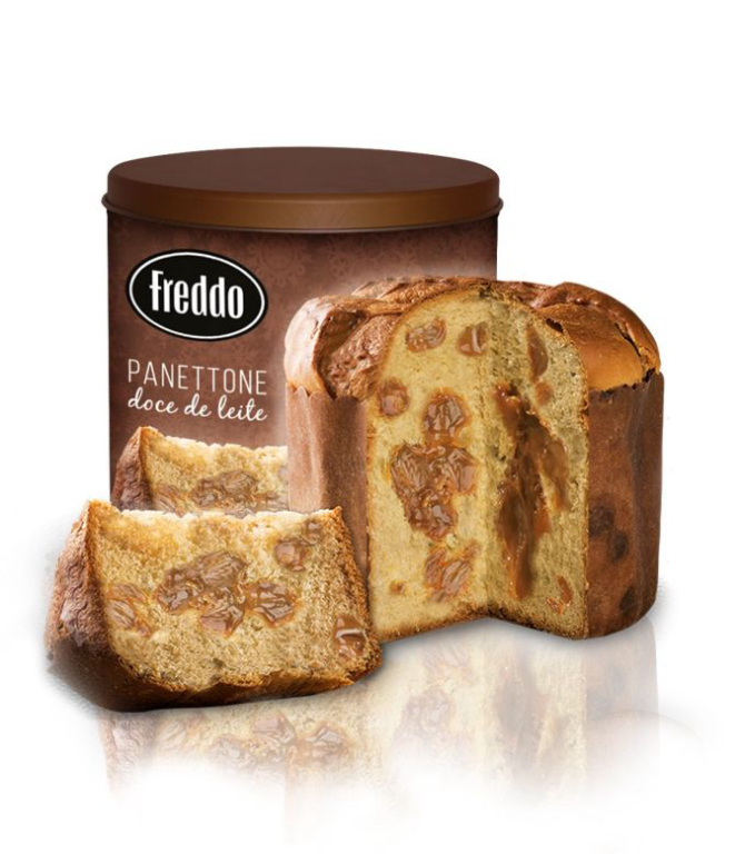 Famosa pelos sorvetes e pelo sabor de doce de leite tradicional, o Freddo Clásico Argentino também tem panetones. A versão premium vem recheada com o tradicional doce de leite argentino e 700 g. O preço é de R$ 54,90. Com processo de fermentação natural, o recheio traz o tradicional doce de leite fabricado pela própria marca. À venda nas lojas no Shopping Palladium (3.º piso) e na Rua Deputado Antonio Baby, 18.