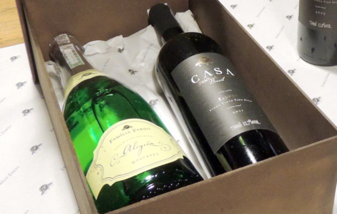 O kit especial tem um espumante da Linha Alegria acompanhado de um Tannat 2011, da Linha Casa, em estojo de madeira, ao valor de R$ 120. Ao adquirir o kit, o cliente ganha também uma garrafa do vinho Cabernet Sauvignon 2009, de brinde.