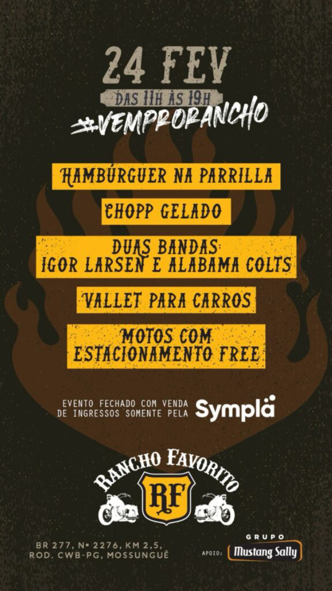 "Queremos um dia para curtir os amigos, com tranquilidade, muito rock e burguer na parrilla", destaca Marco Favorito, proprietário do Rancho. As motos continuam com espaço garantido no pátio, marca registrada do Rancho, e os carros terão a opção de vallet.