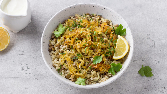 Majandra - Esse é o tradicional arroz com lentilhas da cozinha árabe. Cominho e cebolas caramelizadas dão o aroma e o sabor característicos. O prato é ótimo acompanhamento para assados como carneiro, mas também vai bem com carne de porco.