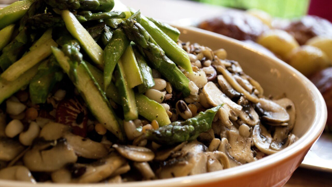 Vegetais bem temperados assados no forno – como a abobrinha, o brócolis, o pimentão, o tomate e a beterraba – vão acrescentar o sabor e a crocância que uma salada perfeita deve oferecer.