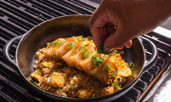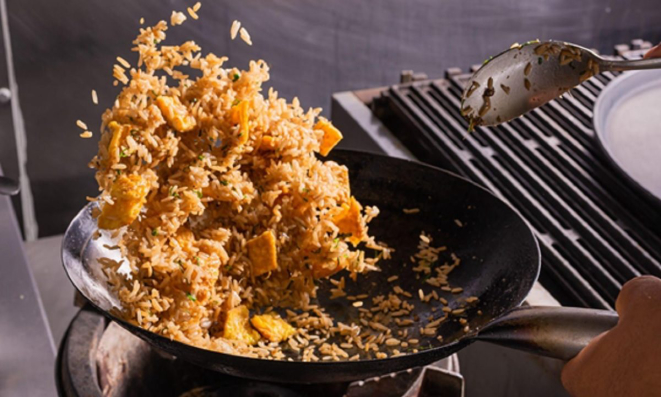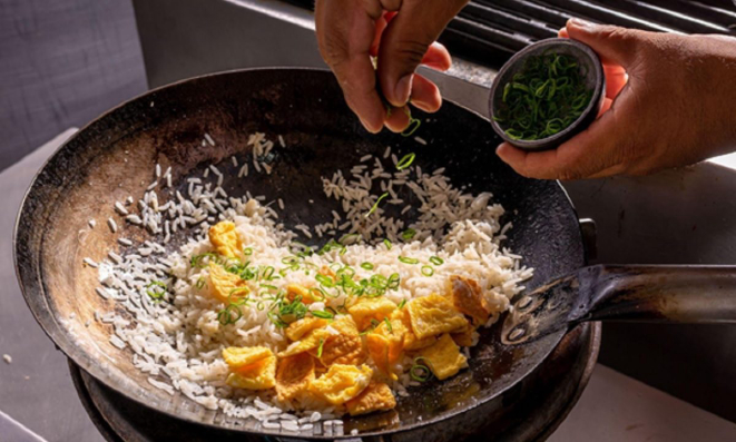 Um dos segredos do prato é deixar o arroz bem soltinho. Também é preciso cozinhar em fogo alto, para que os ingredientes ajudem a defumar o prato. “E o correto é sempre fazer na frigideira wok. Não em panelas altas ou frigideiras comuns”, ensina o chef.