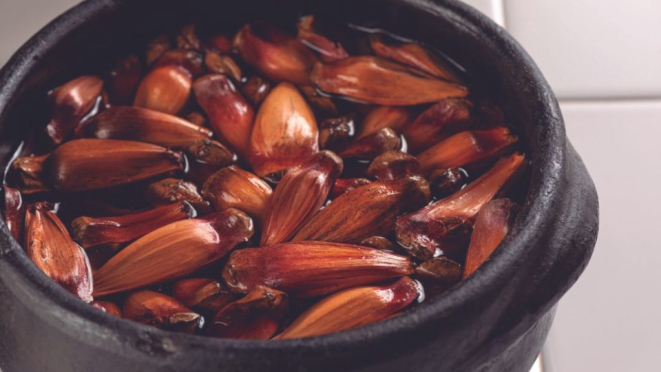 O prato, que se originou nas travessias dos tropeiros pela região, segue até hoje uma linha de construção de sabores e texturas que torna a combinação um sucesso. “A gente usa carne vermelha, embutidos, carnes curadas e defumadas, legumes da estação e o pinhão, obviamente, que tem em abundância na região”, detalha Netto. Na hora da escolha dos legumes, a dica é optar pelos mais firmes como a cenoura, por exemplo, uma vez que os ingredientes devem ficar por bastante tempo no fogo.