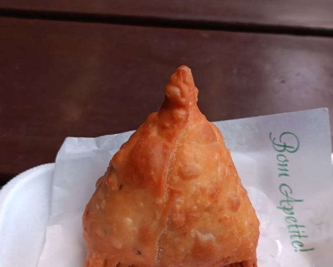 Com forma triangular, o samosa é o pastel tradicional da Índia. Lá, não existe festa sem ele e o consumo na rua é bastante popular. Os recheios mais tradicionais são batata e frango. A receita original leva pimenta, muita pimenta.