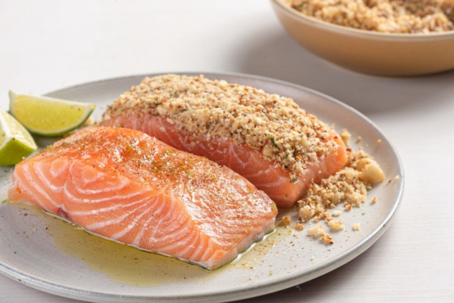Aprenda a fazer um salmão com crosta de castanhas crocante