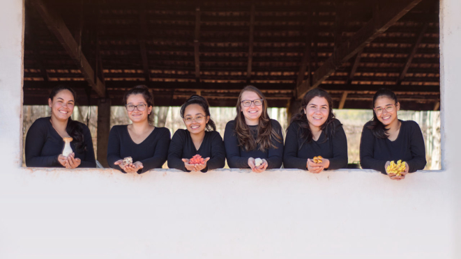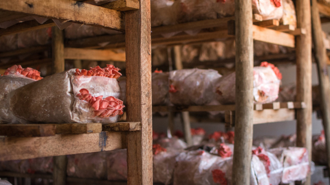 Caroline conta que toda a cadeia de trabalho é composta por mulheres, e que o trabalho tem como base a agricultura familiar. Por essa razão, e também por cada tipo de cogumelo ter uma característica de cultivo e época, a produção é limitada e sazonal. “Nossa proposta é trabalhar com a sazonalidade de cada tipo de fungo”, afirma Caroline.