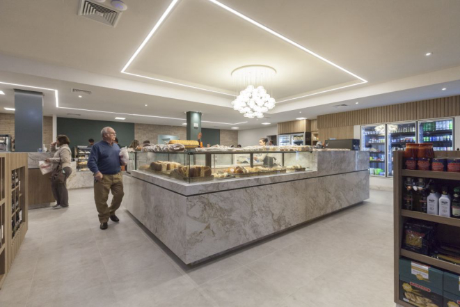 A renovada Aquarius, na Erasto Gartner 363, está atualizada e moderna, com amplo espaço para receber clientes para o lanche, ilha de pães e frios, vitrines de doces, além de um espaço superior também renovado, onde funciona o restaurante que atende o almoço. “Este espaço tem entrada independente pela rua, para o almoço, a partir das 11h30. Mas, a partir das 15h30, esta porta é fechada e o cliente da tarde e noite acessa o andar superior por dentro da loja. Eles podem usar o espaço do restaurante também para os lanches.”