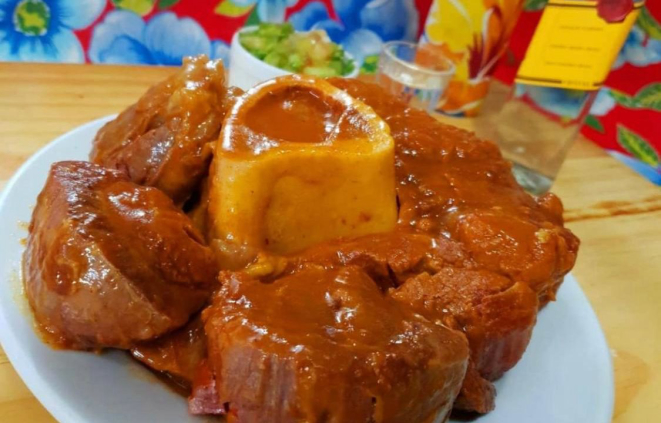 O menu degustação do Seu Luna inclui uma opção de caldinho, bolinho de chambaril, sarapatel, rabada, galinha cabidela ou guisada, chambaril com arroz e pirão e minipudim de leite e doces da casa, feitos com frutas como jaca, mamão e coco. O banquete sai por R$ 79,90 e está disponível apenas no local.