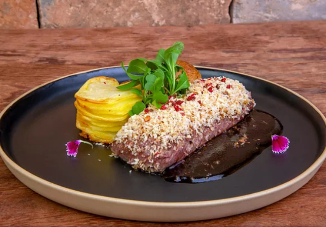 Steak tartare de cordeiro, farofa de erva-mate, arroz de carreteiro com carnes defumadas e salsa crioula, truta na crosta de pinhão, lasanha de cogumelos serranos, moranga recheada com creme de queijo serrano e charque desfiado com arroz de pinhão, cordeiro na crosta de nozes e aroeira estão entre as delícias que podem ser apreciadas. Atenção às sobremesas feita na brasa: crepe de doce de leite caseiro selado no caramelo; e batata de doce assada na brasa com açúcar caramelado, dentre outras.