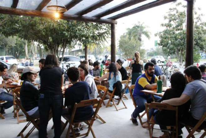 O bar permite a entrada dos cachorros somente no jardim do casarão. Os animais devem ser mantidos na coleira e as raças mais agressivas devem ficar sempre com a focinheira. O bar tem uma ampla área verde, jardim com redes, mezanino e um deque aquecido. A decoração é rústica e no piso superior tem almofadas e pufes para relaxar.