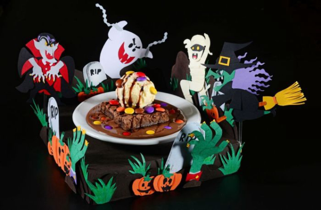 O Au-Au preparou algumas opções especiais para a semana do dia das bruxas. Desta segunda-feira (28) ao domingo (3), o brownie será vendido, em todas as lojas da rede, em uma versão temática, com confeitos coloridos e calda quente de chocolate. O doce custa R$ 15,90.