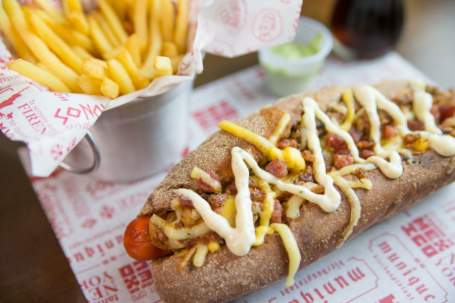 No menu, nada de acompanhamentos previsíveis. O Las Vegas, que será lançado em setembro, leva maionese defumada com bacon, lombo canadense, mix de queijos, pepperoni crocante, pimenta biquinho e salsinha picante. Se o cliente optar apenas pelo cachorro-quente, custa R$ 23,90. Ao adicionar batatas fritas, onion rings ou tortilla chips, sai por R$ 28,40.