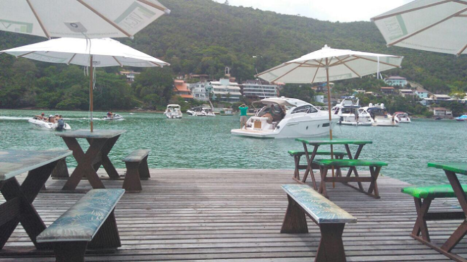 O cenário por si só já explica o sucesso do empreendimento. A Baía do Caixa d’Aço, na cidade de Porto Belo, em Santa Catarina, apresenta água cristalina e mansa, ideal para quem gosta de passeios de barco sem emoção ou um banho de mar tranquilo. Nos primeiros anos do negócio, o bar só atracava durante a alta temporada, de dezembro até o carnaval.