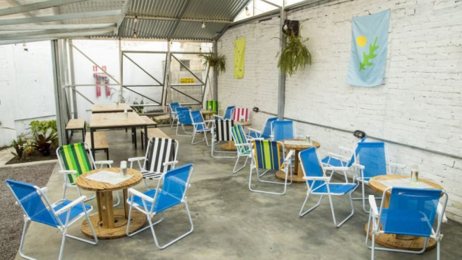 O bar tem um conceito despojado, com cadeiras de praia e boa parte das mesas ao ar livre. Da cozinha da Chef Amanda Rodrigues saem petiscos vegetarianos ou com carne, como o Bolinho Tupi, feito com farinha de tapioca granulada e recheado com carne seca, e as Coxinhas da Lapa, recheadas com palmito pupunha, alho poró, tomate e farofa.