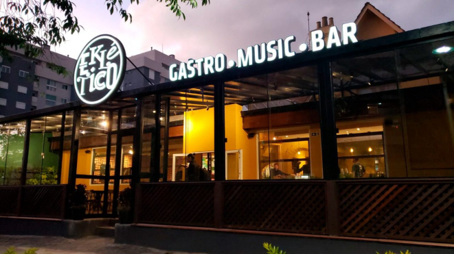 Com música ao vivo de diversos gêneros, comes e bebes únicos e exclusivos, o Eklético tem uma varanda para aproveitar o cardápio de drinks e porções da casa.