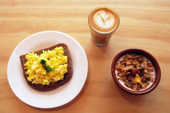 O Combo 1 (R$ 13) inclui um Bueno (café com leite), com tostada com ovo mexido. O Combo 2 (R$ 18) leva um Bueno, tostada com ovo mexido e iogurte com granola artesanal.