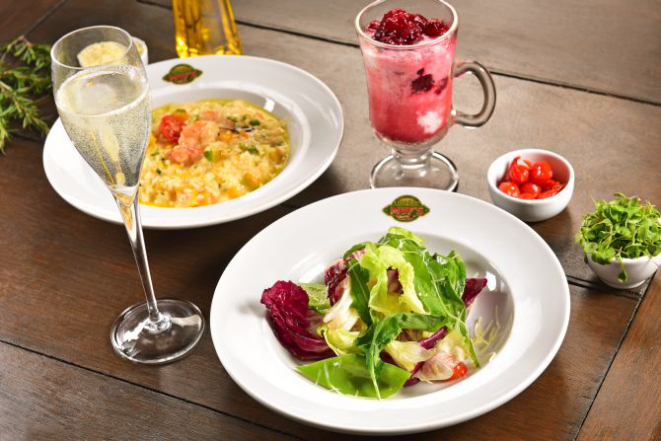 Entre os pratos principais, há cinco opções. Uma das apostas, segundo o proprietário Marcos Almeida, é o risoto de arroz arbóreo com abóbora cabotiá e camarão (R$ 49,90). Outro destaque é a costelinha suína assada e servida com uma polenta cremosa finalizada com suco de milho verde (R$ 39,90). Ele lembra também das sugestões do dia, como a que tem uma entrada do dia, prato com camarão, uma sobremesa e uma taça de espumante por R$ 59,90 (menu completo).