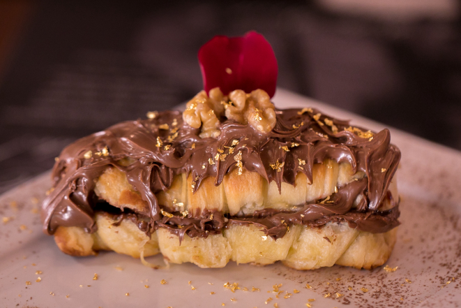 Café no Bigorrilho serve croissant, taça doce e café com flocos de ouro 23k