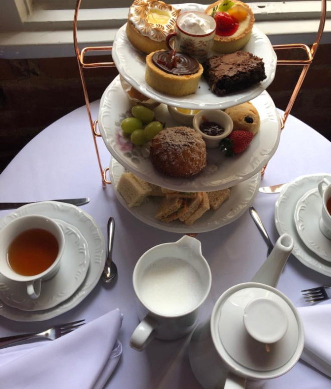 Para acompanhar esse banquete, não poderia faltar o icônico chá, é claro. Os britânicos tradicionalmente consomem com leite, mas é possível escolher com ou sem. Ao todo, são oito tipos de chá e doze variedades de café, cada um batizado com o nome de um membro da família real, assim como os pratos. Princesa Diana, por exemplo, ganhou uma salada em sua homenagem.