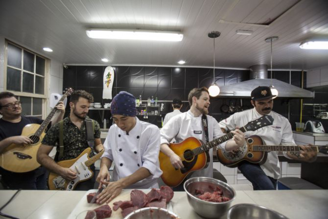 É verdade que as melhores ideias surgem espontaneamente. E foi assim mesmo, sem muita pretensão, que os chefs do premiado Lagundri, Marcelo Amaral e Tom McDougall, junto com o bartender Yuri Blanke, decidiram formar uma boy band (puramente, uma banda formada por meninos) para se apresentar aos clientes do restaurante diretamente da cozinha. Por denominação própria: é a primeira banda de cozinheiros do Brasil.