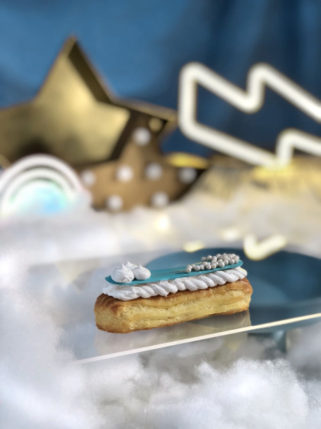 Esse ano, toda a proposta se baseia no tema “Céu”, o que trouxe para as vitrines da doceria combinações bem coloridas e festivas. Você vai encontrar a éclair Trovão, de cremes de amora e explosivo; Arco-Íris, de tutti-frutti com frutas; Sol, com creme de laranja e geleia de pimenta; e a Nuvem, feita com cumaru, conhecida como a baunilha brasileira, vinda da Amazônica.
