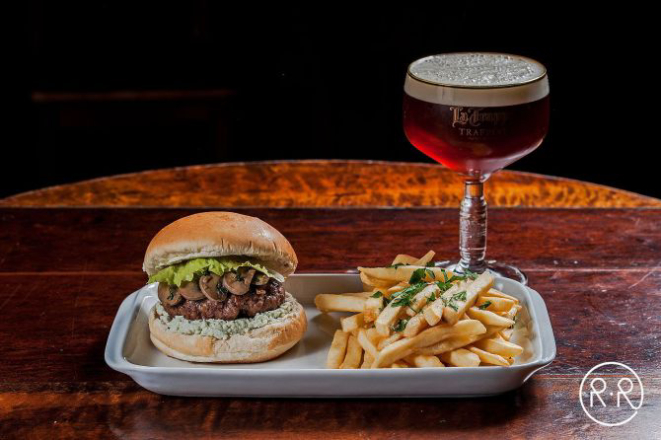Chope e hambúrguer no Varanda Beer House. Ouça.