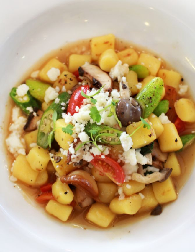 O chef Rodrigo Oliveira, do festejado restaurante Mocotó, de cozinha nordestina, em São Paulo, resistiu muito tempo à tentação de abrir um restaurante com cardápio mais autoral. Finalmente este ano ele inaugurou a nova casa – mas não arredou o pé do bairro de periferia onde cresceu e fez fama. O Esquina Mocotó fica ao lado da casa-mãe, mas com arquitetura moderna, e pratos mais criativos, embora sempre com sólida base nas tradições do sertão de Pernambuco. Exemplos: tutano assado no osso com vinagrete de língua e folhas verdes; “nhoca” (foto 1 – nhoque de mandioca com legumes, tucupi e queijo de cabra); copa lombo com purê de grão-de-bico e cenoura braseada; e “goiaba, goiaba e goiabada” (sorbet de goiaba, goiaba confit e goiabada com vinho).