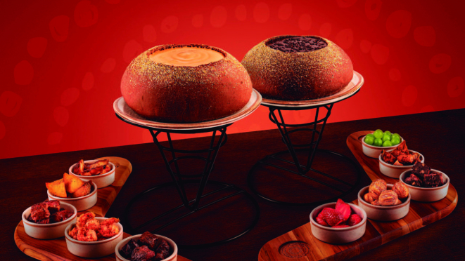 O fondue do Outback está de volta com dois novos sabores: cinco queijos (R$ 114,90 no restaurante e R$ 124,90 no delivery) e brigadeiro (R$ 84,90 no restaurante e R$ 89,90 no delivery). Há, ainda, o combo dos dois a R$ 189,90 no restaurante e no delivery. O fondue salgado é preparado com os queijos Ementhal, Blue Cheese, Cheddar, Gouda e Mozzarella, com cinco acompanhamentos como mignon em cubos, pedaços de frango grelhado ao barbecue, camarões empanados, além dos novos Barbecue Ribs (bites de costela de porco assada e grelhada com barbecue) e Homemade Golden Potatoes, as batatas assadas com toque da casa. Já a versão doce é um cremoso brigadeiro com um toque leve de páprica finalizado com granulados, e acompanhado de brownie em pedaços, cookies e mini churros crocantes.