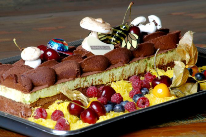 Para a sobremesa, as sugestões são as tortas, acompanhadas de fios de ovos e decoração natalina. O chef recomenda o Tronco de Natal (R$ 99), decorado com cogumelos e bichinhos de chocolate belga. O cheesecake com frutas vermelhas (R$ 92 a unidade) também é uma boa pedida.