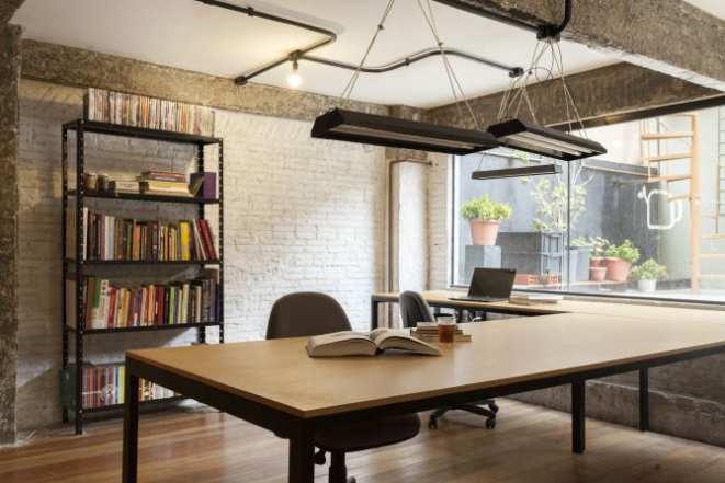 No segundo andar acima da cafeteria ficam os escritórios e a sala de reunião. Com o foco de criar uma rede de contatos entre pessoas interessadas em gastronomia e cultura alimentar, os escritórios são voltados para profissionais que trabalhem com algo relacionado a estes temas. Estão instalados lá a Vivah Gastronomia e a Controversos Fauxtógrafos. O espaço comporta três escritórios para até três pessoas e seis cadeiras fixas, para quem trabalha sozinho. Há uma biblioteca da Vivah Gastronomia para consultas no local e janela para o terraço, onde fica a horta. Ainda há vaga para três empresas e uma “promoção”: no início, o aluguel de um mês valerá para dois, para que o profissional avalie a experiência.