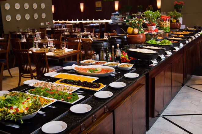 A chamada Feijuca do Radisson tem uma extensa mesa de saladas e acompanhamentos como caldinho de feijão, bacon, torresmo, cebolinha e cheiro verde. Há também buffet de sobremesas, incluindo opções brasileiríssimas como arroz doce, canjica e pudim de leite.