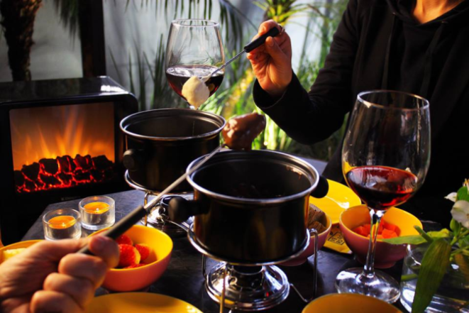 Outra opção são os combos especiais. O chocolate + gromage inclui os fondues de queijo e chocolate e custa R$ 88. Já o chocolate + gromage + vin inclui os dois fondues e ainda um vinho tinto (Carmenere) ou rosé (Chardonnay) por R$ 148.