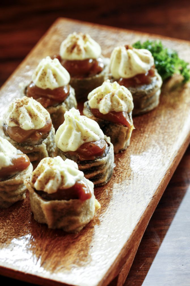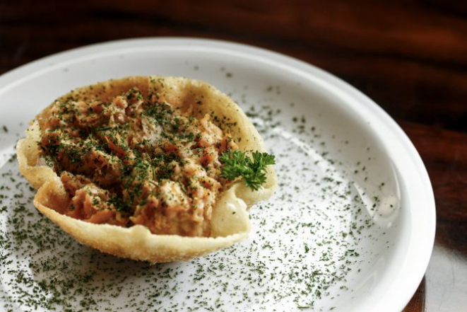 Para começar tem casquinha crocante recheada com salmão e cream cheese (inspirado em pratos de Hong Kong) e anéis de lula empanados com farinha e coco e servidos com geleia picante (Tailândia). Já o carpaccio de tilápia é servido com um delicado molho de ostra.