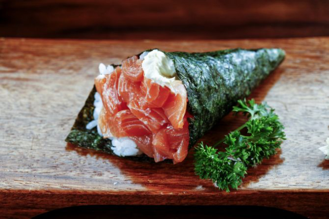 O rodízio conta também com uma opção vegana de sushi, feito com arroz, cenoura, moyashi (broto de feijão) e shiitake enrolados em couve. Para finalizar, tem a versão asiática da torta banoffee: chamada de banoffee roll, a sobremesa leva banana, doce de leite, chantilly e canela.