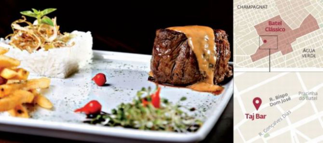 Conheça: apesar de ser o forte da casa, o cardápio do Taj Bar, que completa dez anos em 2014, não é feito só de pratos indo-asiáticos. Outros sabores, que mesclam o brasileiro com o oriental, também são destaque. Entre eles está o Western Steak (R$ 37,90) – medalhão de filé mignon grelhado, servido com batatas fritas e arroz jasmim e molho tonkatsu suavizado.