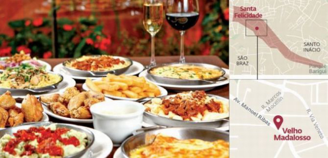 Conheça: aberto em 1963, o Velho Madalosso é um dos restaurantes mais tradicionais da cidade. No cardápio estão os pratos como frango à passarinho, risoto, polenta frita, além de saladas, todos servidos na mesas. Há ainda o rodízio de carnes com as opções de fraldinha, tender agridoce, linguicinha, alcatra grelhada e medalhão de lombinho com bacon. Onde: Restaurante Madalosso. Quanto: R$39 o rodízio, por pessoa.