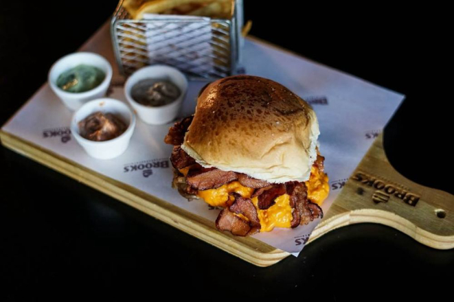 A onda dos hambúrgueres não para de crescer. Já rica em opções para os amantes do sanduíche, Curitiba ganhou no começo de setembro mais um endereço. O diferencial da Brooks, rede paulista que conta com 26 unidades em três estados, são os dois sanduíches assinados por cozinheiros famosos: por enquanto, o cardápio conta apenas com a opção criada por Jimmy Ogro, que participa do programa Mais Você da Ana Maria Braga, na Rede Globo, mas em breve a casa lançará também o hambúrguer de Henrique Fogaça, jurado do MasterChef e dono do Sal e do Cão Véio.
