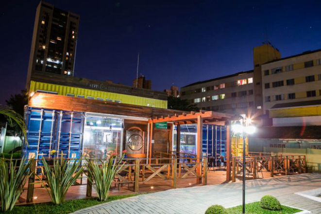 Com cardápio enxuto e uma arquitetura diferente, a Muzik Hamburgueria abriu as portas no começo de junho, no Alto da XV. A casa, que tem um telhado de vidro para permitir o máximo aproveitamento de iluminação natural, foi mobiliada no interior de cinco contêineres marítimos.