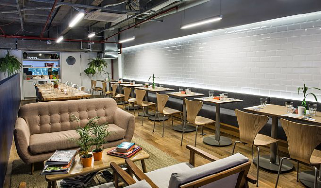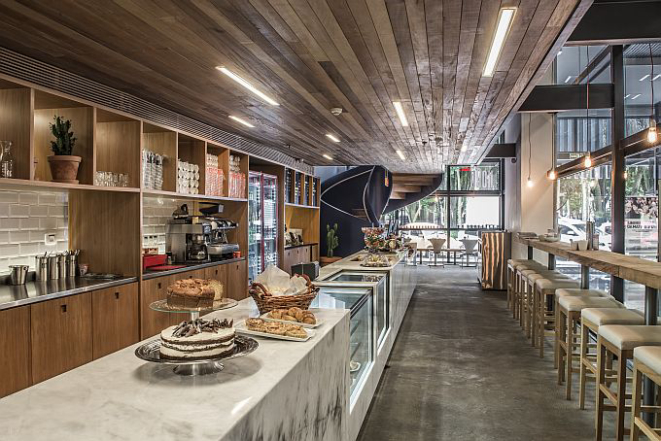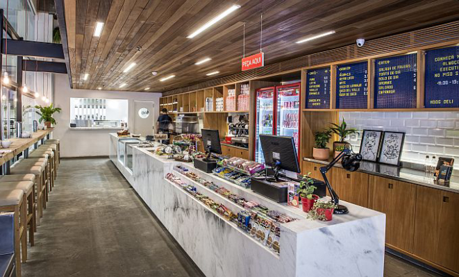 O conceito de cantina é outro no Hoog. Pensando na praticidade e conforto, o ambiente conta com detalhes dedicados aos estudantes, como tomadas, mesas coletivas e espaços de leitura. Os 60 lugares são divididos em diferentes espaços dos dois andares da delicatessen, cujo projeto foi desenvolvido pelo arquiteto Leandro Garcia.