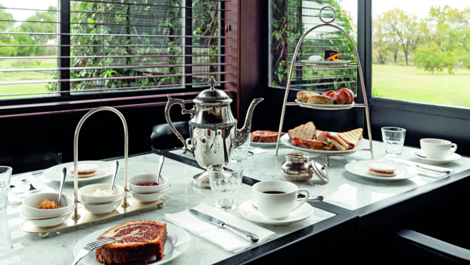 Como tudo isso se reflete no cardápio? O serviço de café da manhã é inspirado no eternizado chá das cinco da Rainha Elizabeth II. Em uma torre provençal são servidas frutas frescas picadas, queijos, charcutaria, bolos, tortinhas doces e, claro, alfajores caseiros com muito doce de leite. Tudo do Uruguai. Só a inspiração é britânica. Para acompanhar, pães de fermentação natural, omelete recheado com queijo, presunto artesanal e bacon, ovos mexidos, sucos, café e chá. Praticamente um brunch. Experimente harmonizar a primeira refeição do dia com um vinho branco ou rosado local e se surpreenda.