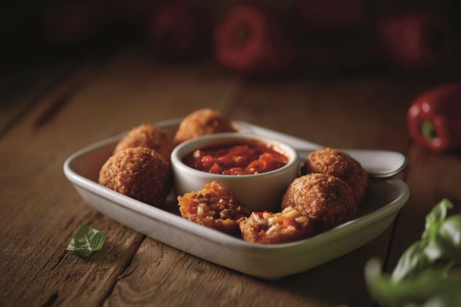 Entre os pratos do menu de almoço e jantar, sugestões como os antepastos Arancini (bolinhos de risoto com linguiça italiana e pimentões, servidos com o clássico molho marinara, R$ 30,50) e Calamari (cortes de lula empanados e acompanhados de molho marinara, R$ 35,50). Como prato principal, Gamberi con Prosciutto (espetinhos de camarão grelhados, envoltos em prosciutto e servidos com risoto crocante de quattro formaggi, R$ 64), Ravioli di Aragosta (recheados com creme de lagosta ao molho de vinho chardonnay cremoso, R$ 65) e Brasato al Chianti (corte de costela desossada lentamente assada, coberta com molho Chianti e acompanhada de purê de batatas e aspargos grelhados, R$ 57,50).