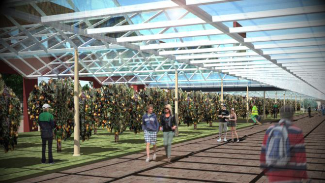 Quem quiser fazer compras no espaço terá à disposição 500 bicicletas com três rodas para se deslocar e cestas para estocar os produtos. A expectativa é receber 6 milhões de visitantes todo ano. O complexo será abastecido com energia de 44 mil painéis fotovoltaicos.