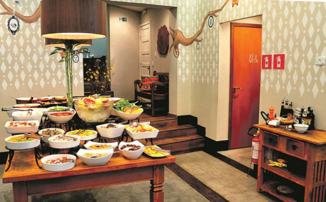 Outra atração da casa é a parte reservada às saladas. Diariamente há opções com folhas, legumes, algum item com palmito, frutas e sempre abacaxi grelhado com melado. Ao lado do buffet, a seção de sobremesas. Com influência do comfort food, no dia da reportagem figuravam sagu com creme, pavê de sonho de valsa e panna cotta.