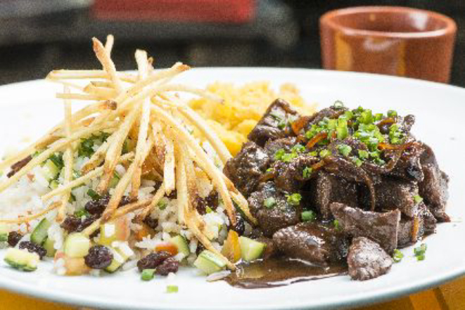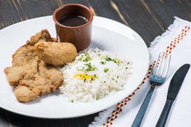 Acompanha arroz com ovo poché, banana à milanesa e feijão preto supertemperado. Às quartas-feiras é a vez do picadinho com arroz biro-biro, farofa de ovo e feijão carioca. A chef Manu explica que a intenção do 4 Sí Brasserie, aberto em janeiro e que tem capacidade para 90 pessoas, é mostrar receitas “caipiras” com apresentação mais atual.