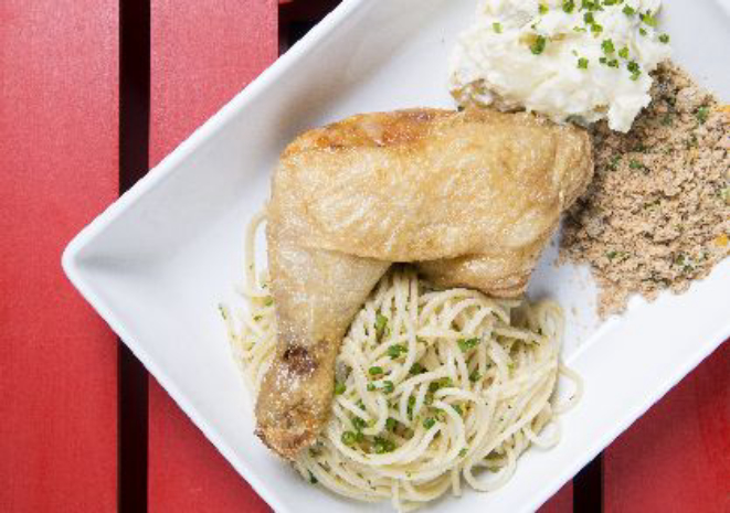 Quinta-feira é dia da carne moída com quiabo acompanhado de virado de feijão, miniarroz cateto e ovo estalado. Sexta-feira é a vez do frango (coxa e sobrecoxa) frito com macarrão na manteiga, farofa e maionese. Na terça, o prato feito tem bife à milanesa cuja casquinha é crocante e não sai da carne.