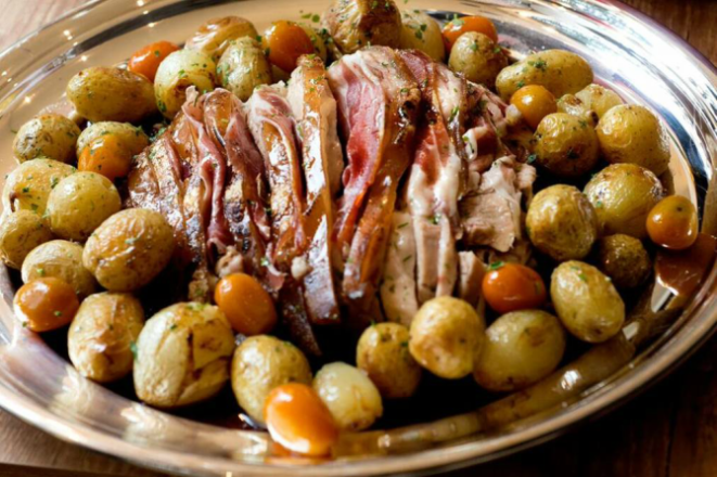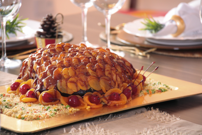 Carnes, aves, frutos do mar, acompanhamentos e tortas podem ser encomendados no La Table Gastronomia. São 13 opções, dentre elas o couscous paulista de camarão e bacalhau que custa R$ 430 a porção. Outra opção é o tender confitado com geleia de maçã e alecrim, que custa R$ 420 . O peru recheado com farofa de amêndoas, ervas frescas e limão siciliano, com molho do próprio assado, custa R$ 430 — todas estas opções servem até seis pessoas. Já o pernil suíno com molho de vinho e minicebolas caramelizadas custa R$ 420 e serve até oito pessoas. As encomendas devem ser feitas até dia 15/12, com entrega ou retirada no dia 24. Para pedidos acima de R$ 600, não é cobrada taxa de entrega.