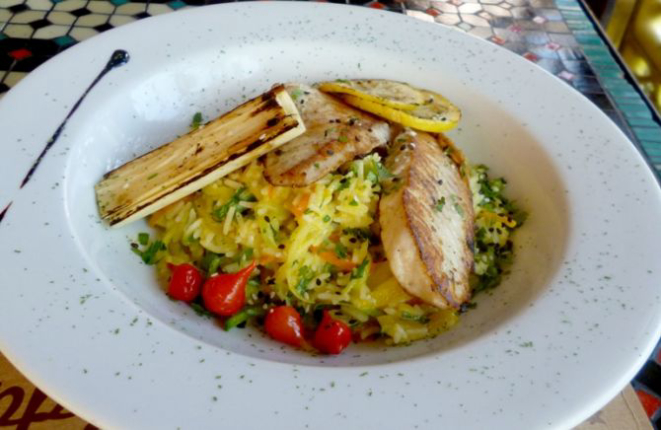 Quem tem intolerância, alergia ou apenas não quer consumir a lactose, tem a opção do arroz com azeite de dendê, legumes e leite de coco, que acompanha a tilápia grelhada (R$ 29,90).